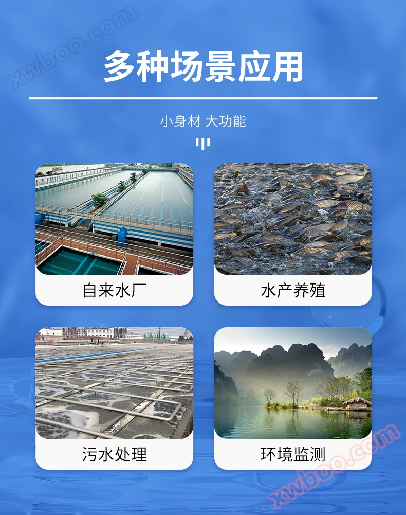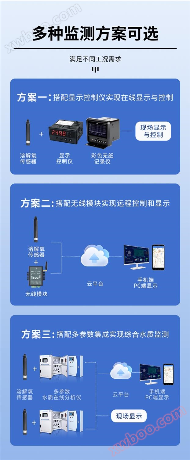 سنسورهای اکسیژن محلول فلورسنت به طور گسترده ای در سناریوهای نظارت بر کیفیت آب مانند آبزاری، تصفیه فاضلاب، دریاچه های رودخانه و آشامیدنی استفاده می شوند.